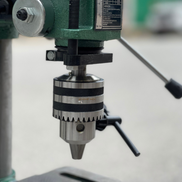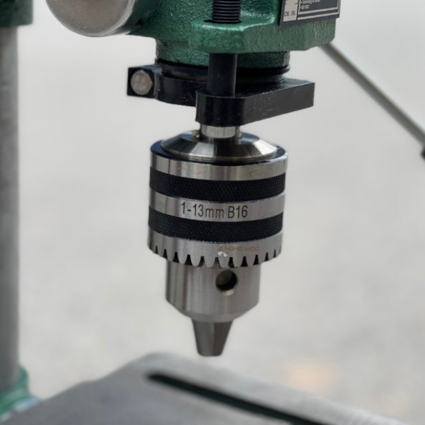 - Mũi khoan được kẹp chặt bởi mâm cặp tự động, đảm bảo độ ổn định trong quá trình khoan.